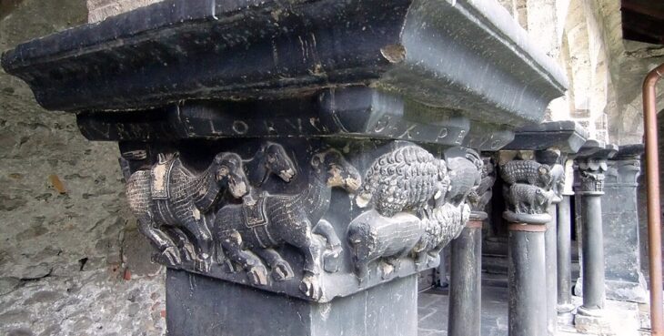 Il Complesso di Sant’Orso rappresenta la chiave di volta per comprendere la storia di Aosta oltre la sua eredità romana. Sorge su un’antica necropoli extraurbana dove, nel V secolo, nacque un primo nucleo paleocristiano accanto alla chiesa cruciforme di San Lorenzo. L’originaria struttura di Sant’Orso, una semplice aula absidata con porticato funerario, è stata indagata da una vasta campagna archeologica tra il 1976 e il 1999, che ne ha svelato la complessa evoluzione. Dopo un primo ampliamento altomedievale, all’inizio dell’XI secolo prese forma l’attuale impianto romanico a tre navate, che inglobò il vecchio campanile nella facciata. La torre campanaria odierna risale invece al XII secolo, residuo di un antico sistema difensivo. Sebbene le fasi più arcaiche giacciano sotto il pavimento, la stratificazione storica emerge nitida negli interni, tra il coro ligneo quattrocentesco, la cripta e gli straordinari affreschi dell’XI secolo custoditi nel sottotetto. Di grande valore è anche il mosaico pavimentale del coro, raffigurante Sansone che uccide il leone. Dal lato destro della facciata si accede al chiostro, fulcro spirituale del complesso e tra gli spazi più suggestivi della città. Eretto nella metà del XII secolo per la vita regolare della Collegiata e parzialmente rimaneggiato nel Quattrocento, il chiostro è un raffinato “racconto figurato” scolpito nel marmo dei suoi capitelli (vd. foto). Il lato nord ospita scene della Natività e motivi favolistici; il lato est narra episodi dell’Antico Testamento, mentre il sud alterna profeti a decorazioni ornamentali. Spiccano il capitello dedicato alla vita di Sant’Orso e gli ultimi due che documentano l’adozione della regola agostiniana. Chiudono la cornice gli edifici circostanti, tra cui spicca la residenza quattrocentesca del priore Giorgio di Challant. Distinguibile per l’uso del laterizio, l’edificio è alleggerito da finestre a crociera e da una torretta ottagonale. Al suo interno, la sala capitolare e la cappella affrescata completano un itinerario che intreccia arte, fede e potere nobiliare.