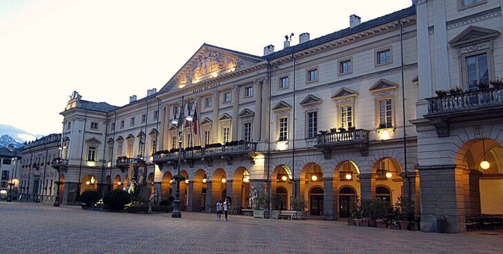 Piazza Chanoux è il centro civico di Aosta, il luogo in cui la città si riconosce dal punto di vista istituzionale prima ancora che urbano. Di forma rettangolare e dalle dimensioni contenute, è uno spazio facilmente leggibile, nel quale la funzione pubblica prevale su quella celebrativa. La piazza ha assunto l’assetto attuale nel corso dell’Ottocento, quando venne regolarizzata e ampliata secondo criteri di ordine e simmetria. In origine era intitolata a Carlo Alberto di Savoia, nome che mantenne fino al secondo dopoguerra, per essere poi dedicata all’intellettuale antifascista Émile Chanoux, figura centrale della storia valdostana del Novecento. Al centro dello spazio si trova il monumento al soldato valdostano, che ricorda il contributo della regione ai conflitti del Novecento. Sul lato principale della piazza si affaccia l’Hôtel de Ville, sede del Comune di Aosta. L’edificio, realizzato tra il 1839 e il 1842 in stile neoclassico, presenta una facciata sormontata da un ampio frontone decorato. Un porticato corre lungo il piano terreno e, alla base, trovano posto due sculture allegoriche che rappresentano i corsi d’acqua che lambiscono la città: la Dora Baltea e il Buthier. Sul tetto sono collocati un orologio, sul lato occidentale, e una meridiana, su quello orientale. Gli interni sono in parte visitabili, in particolare il Salone Ducale e alcune sale di rappresentanza utilizzate per cerimonie ed eventi istituzionali. Sulla piazza insistono anche altri edifici di rilievo. Tra questi spiccano l’Hotel Couronne et de la Poste, uno degli alberghi più prestigiosi della Valle d’Aosta nell’Ottocento, che ospitò teste coronate e capi di Stato europei, e l’Hôtel des États, edificio del XVIII secolo destinato alle assemblee cittadine del Regno di Sardegna e oggi utilizzato come spazio per mostre temporanee. Oltre alla sua prevalente funzione pubblica, Piazza Chanoux è il teatro di alcuni degli eventi più sentiti di Aosta, a partire dalla Fiera di Sant’Orso, in gennaio, e dalla Foire d’été, in agosto, entrambe dedicate all’artigianato e alle tradizioni enogastronomiche valdostane. Una tappa imperdibile.