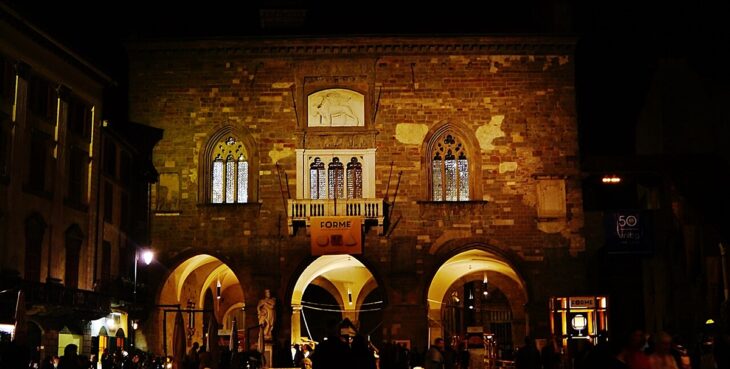 Risalente al XII secolo, questo palazzo è l’antica sede comunale di Bergamo (Patalatium Comunis Pergami), nonché una delle sedi comunali più antiche in Italia, probabilmente seconda soltanto a Palazzo Senatorio, attuale sede comunale di Roma. Il nome, però, dà evidenza di un’altra funzione pubblica, quella dell’amministrazione della giustizia; ruolo quest’ultimo risalente al XVI secolo, durante la dominazione veneziana. Dismessa da secoli la veste di tribunale, Palazzo della Ragione, o meglio la Sala delle Capriate al primo piano dell’edificio, viene utilizzato per l’esposizione di mostre temporanee. Il loggiato al piano terra, invece, divide urbanisticamente Piazza Vecchia da Piazza del Duomo, su cui si affacciano la Basilica di Santa Maria Maggiore, la Cappella Colleoni e altri punti di interesse che andremo di seguito ad approfondire.