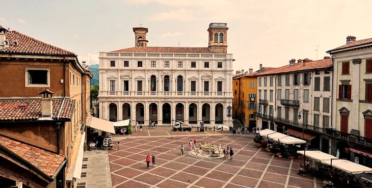 Unanimemente riconosciuta come l’emblema della città, Piazza Vecchia è tappa imperdibile di un soggiorno a Bergamo. Si trova nella CIttà Alta e in epoca medievale era il fulcro del potere politico cittadino, mentre oggi è il cuore del tempo libero e della movida orobica. Una piazza talmente bella da far dire all’architetto e urbanista Le Corbusier “non si può più toccare neppure una pietra, sarebbe un delitto“. Diverse le cose da vedere: dal Palazzo della Ragione, alla Torre Civica, passando per la Basilica di Santa Maria Maggiore – tutti punti che approfondiremo nel prosieguo dell’articolo -, fino alla Biblioteca Angelo Mai e alla Fontana Contarini che domina la piazza. Quest’ultima merita un cenno particolare, dal momento che è un’ulteriore prova storica del peso politico, economico, culturale che la Repubblica di Venezia ebbe su questo territorio. La fontana, infatti, fu donata alla città dal podestà Alvise Contarini che nel 1780 terminò il suo incarico a Bergamo. Oltre all’indubbio valore estetico, alla base del gesto c’era una motivazione pratica: garantire il costante approvvigionamento idrico alla parte alta della città. Da vedere!